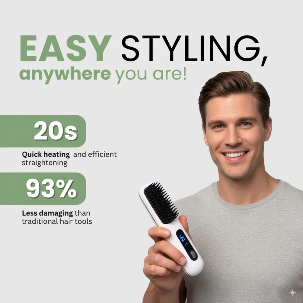 Heated bristles effortlessly straighten and smooth your hair giving you a sharp look in seconds