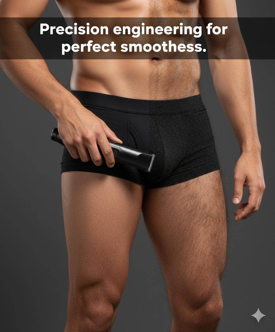 Glide over any zone, even sensitive areas. Our shaver's designed for a close, smooth cut without tugging or nicks. No more worrying about cuts or ingrown hairs. Just pure smoothness and a sharp look, every single time. Feel confident in your skin.